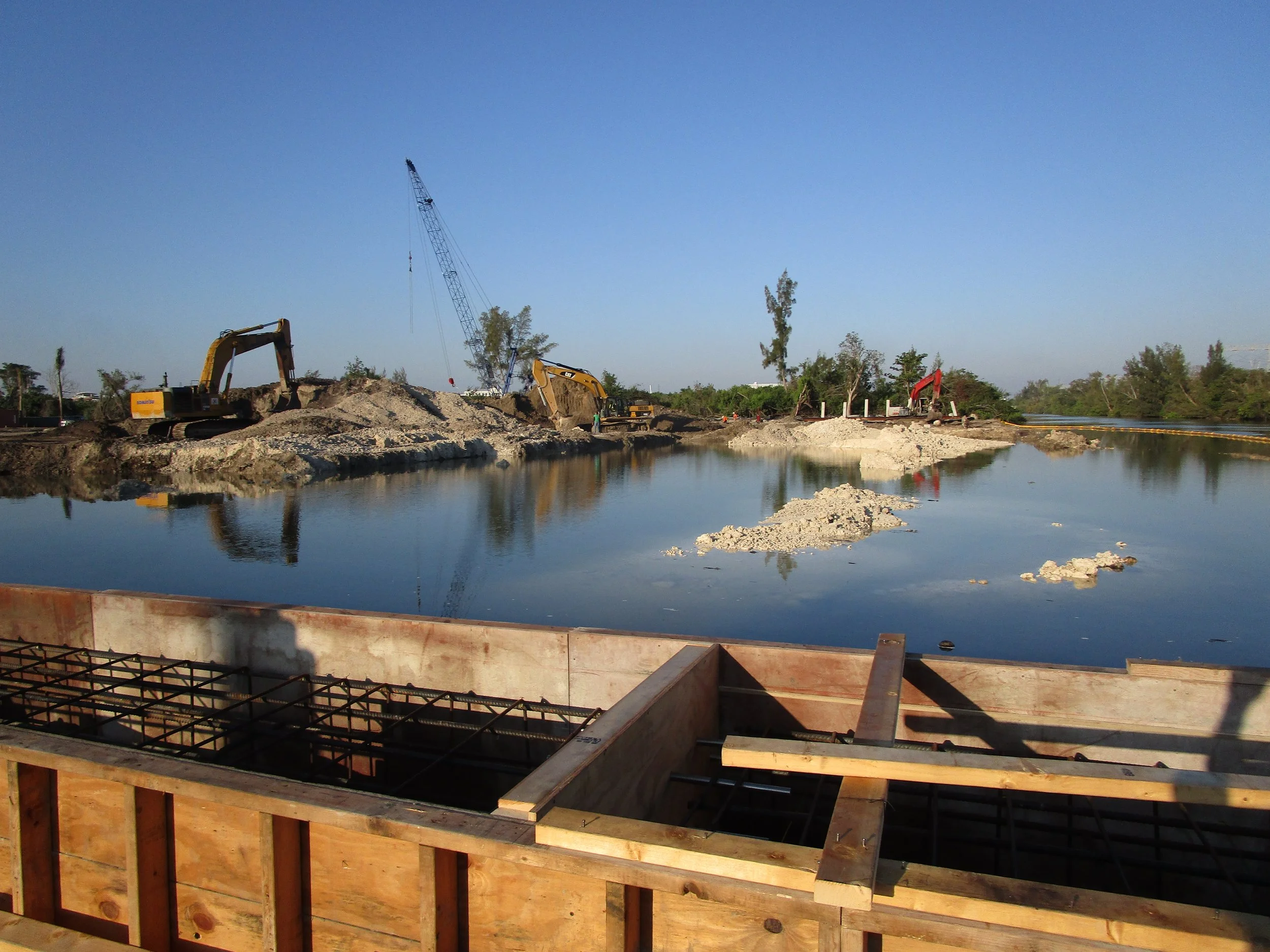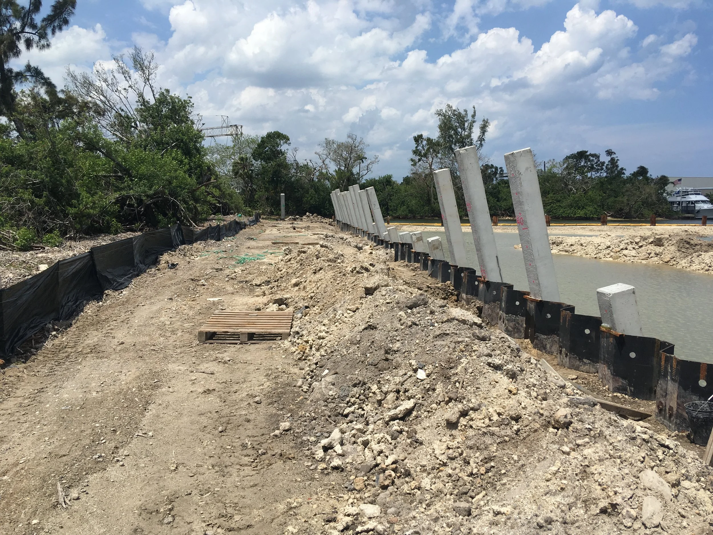 This project involved the creation of a state-of-the-art marina and basin along the Dania Beach Cut-Off Canal, designed to accommodate luxury vessels from 75 to 250 feet. Over 100,000 cubic yards of material were removed to excavate the basin to a depth of -16 feet. The basin’s structure was supported by over 1,200 linear feet of steel sheet piling and concrete batter piles, with a perimeter cap and pedestrian-friendly sidewalks maximizing dock space. Two rows of 12-foot-wide concrete floating docks were installed, featuring fire suppression systems, water, sewer pump-out systems, and high-capacity electrical infrastructure providing up to 600 amps per power pedestal. Upland work included the installation of a city water main loop, integrated sewer, fire, and storm drainage systems, and the construction of a parking lot, making the marina a premier destination for boaters.