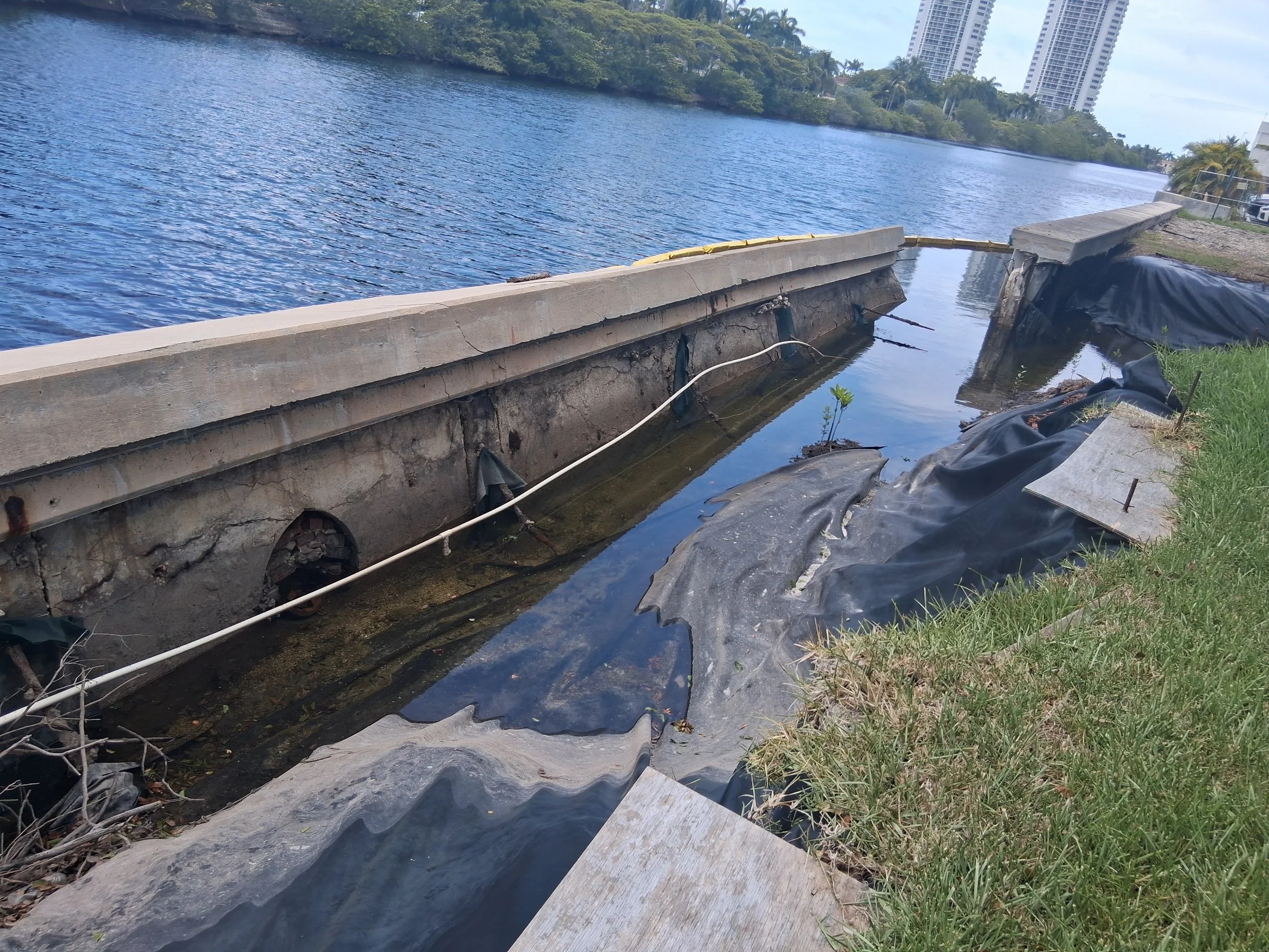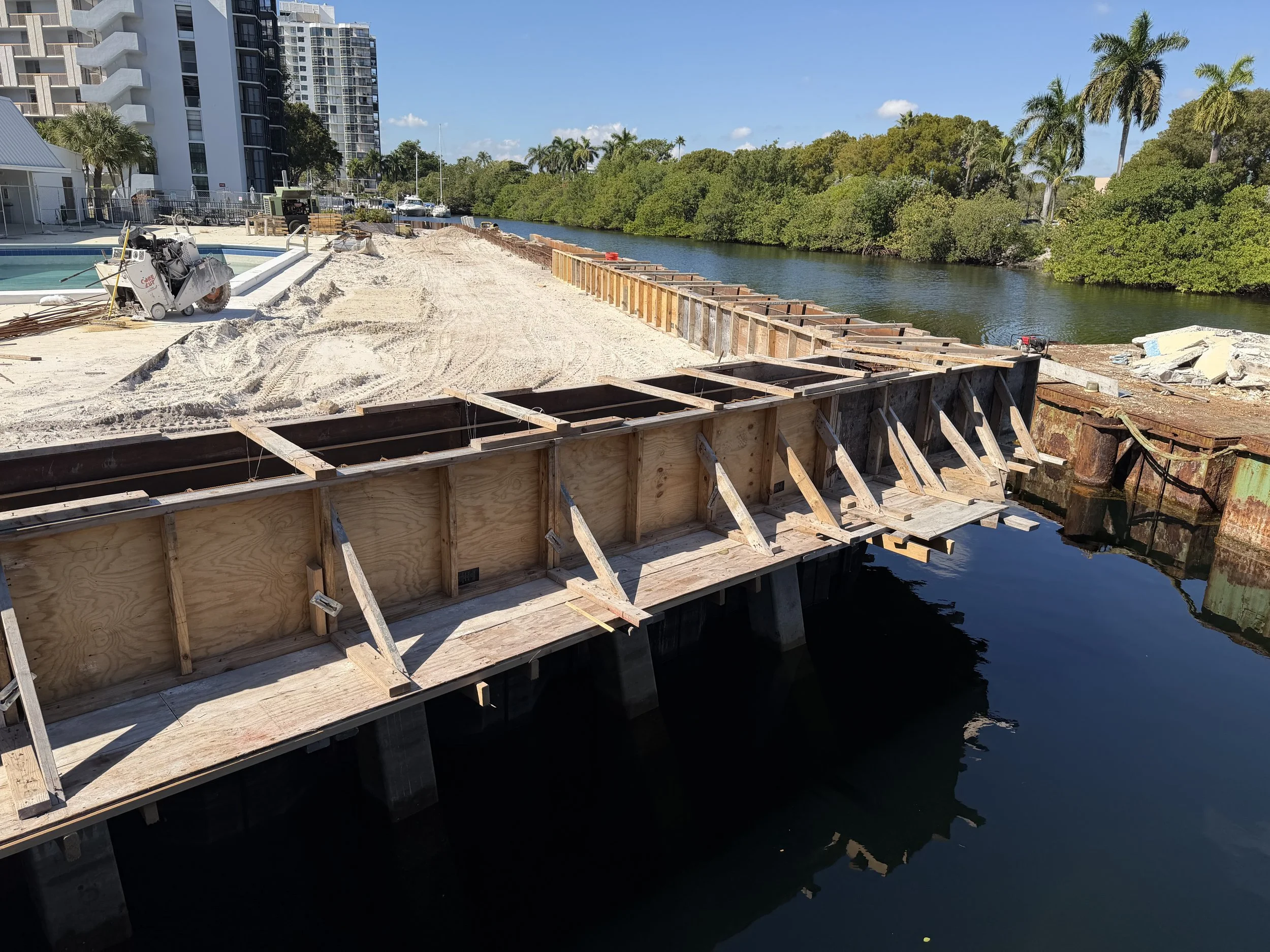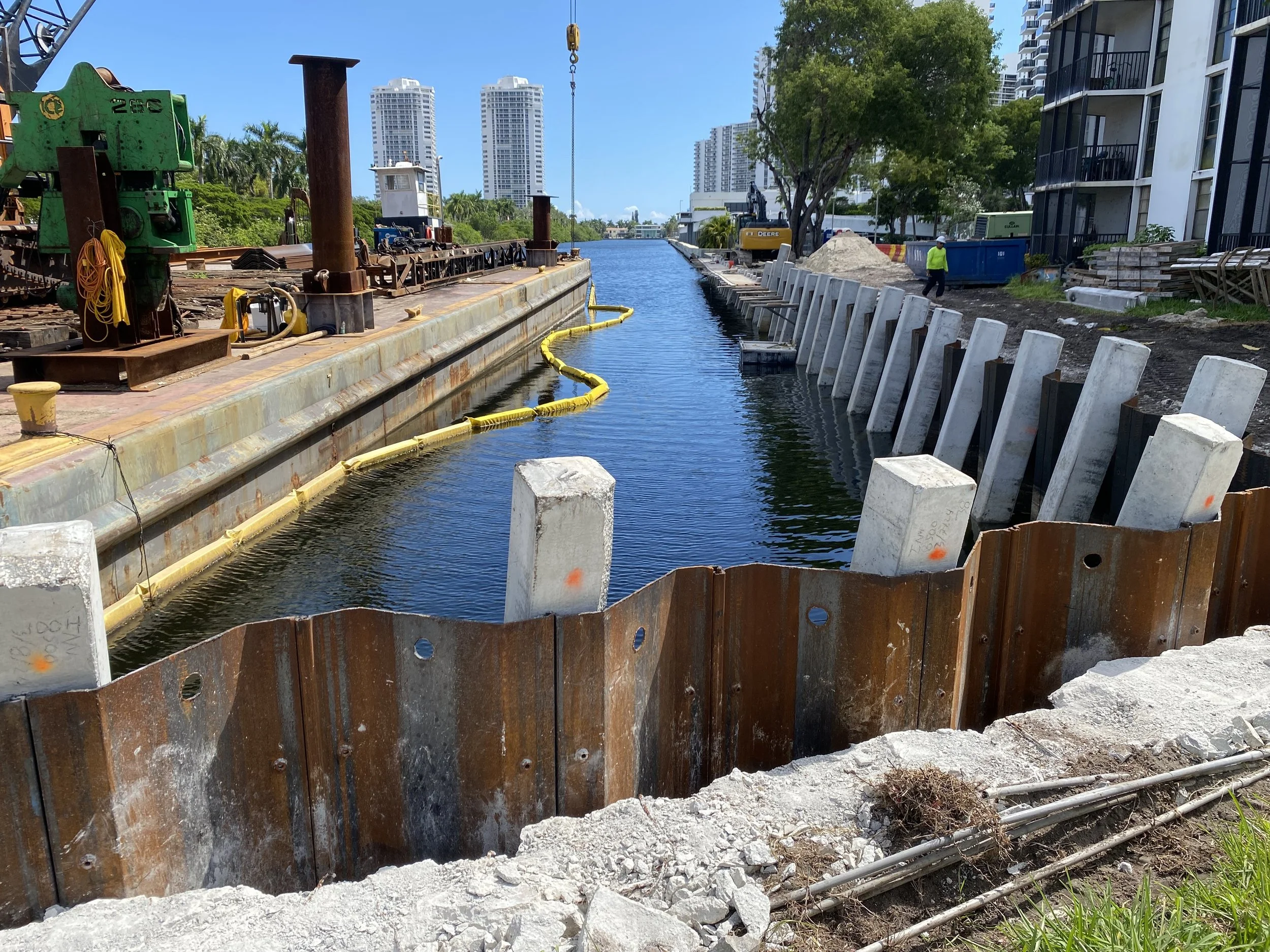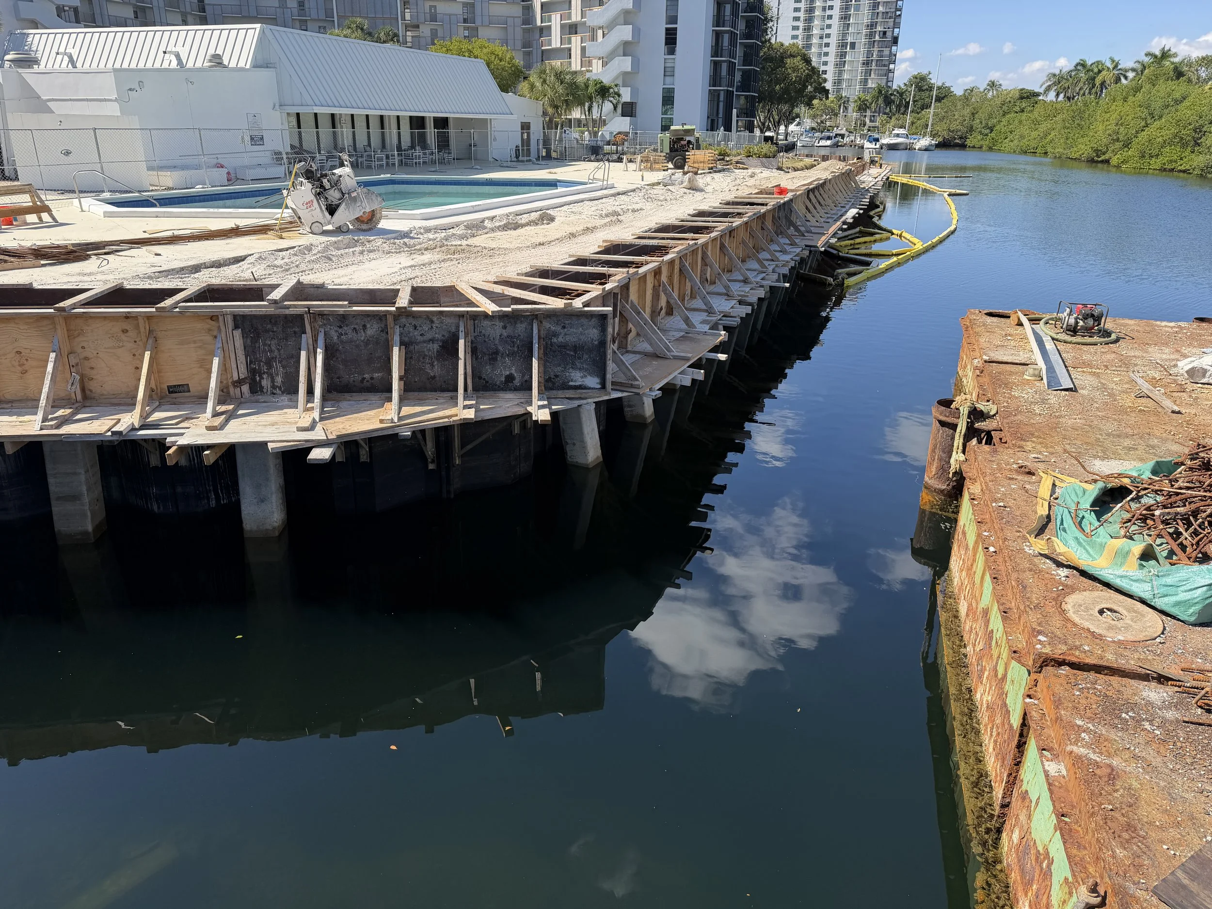This project will consist of constructing a new 1,020-linear-foot steel sheet pile seawall, including the supply and installation of 500 linear feet of floating turbidity curtain and the demolition and disposal of existing deteriorated wall sections. The scope also includes furnishing and installing 38-foot-long concrete batter piles and placing limestone riprap boulders at the toe of the new seawall. We are confident that this newly constructed wall will provide lasting protection and peace of mind to the surrounding community.