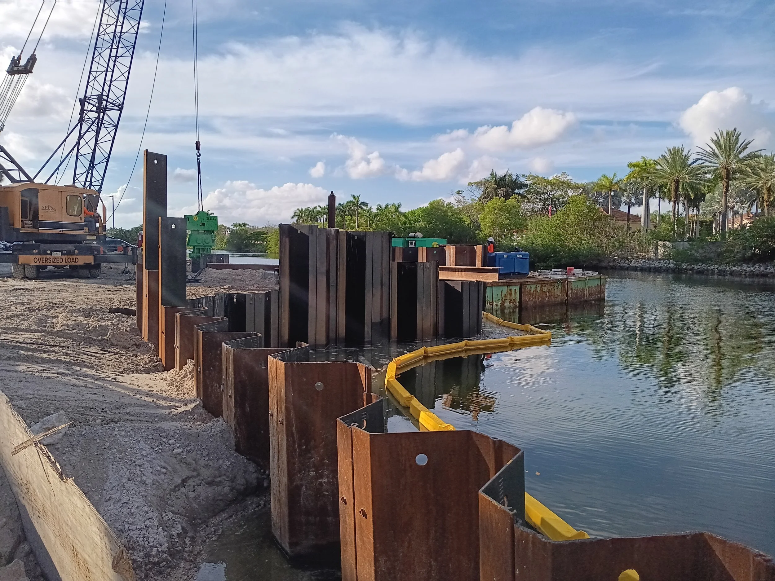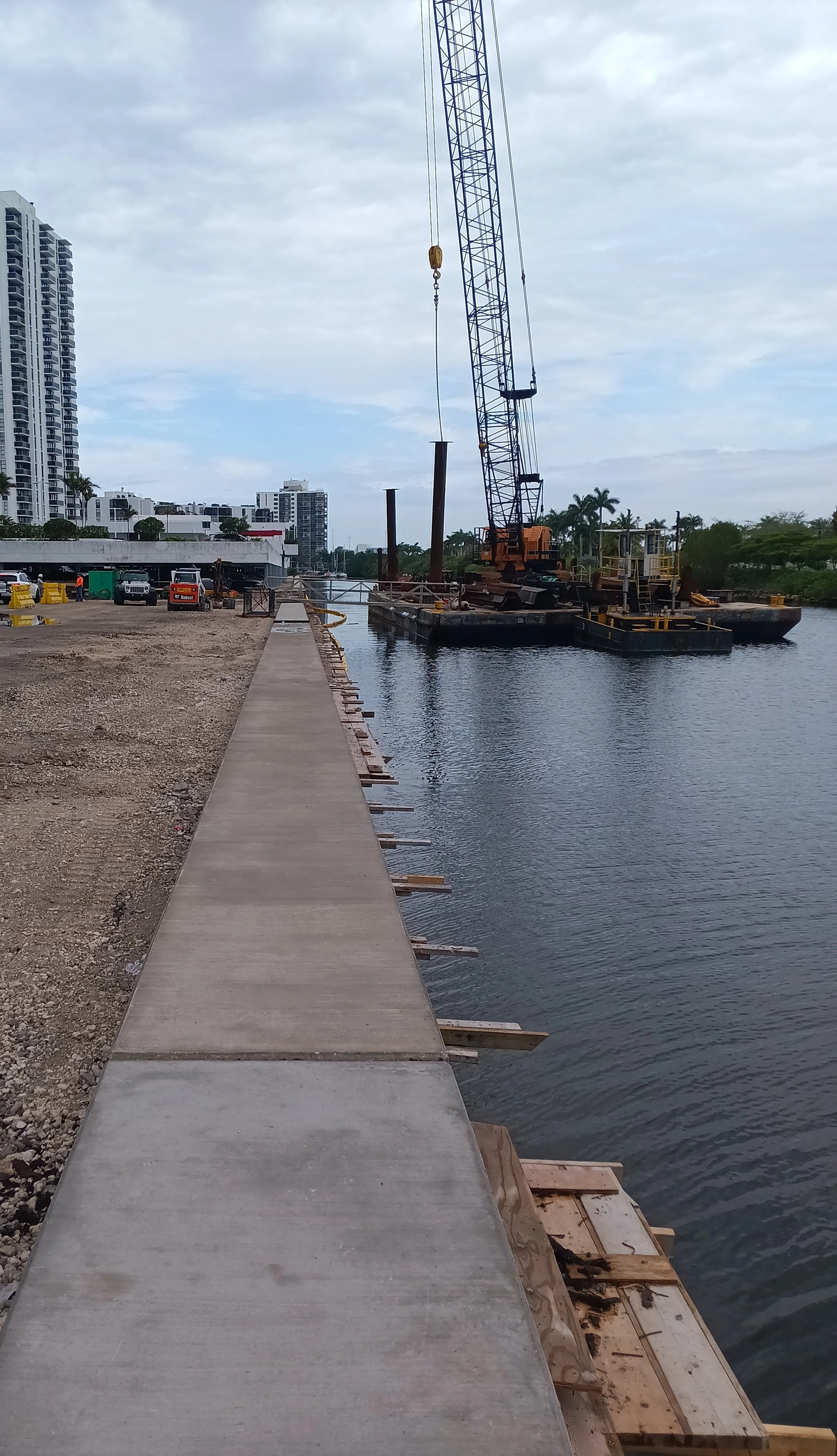 This impressive seawall project features a 550-linear-foot steel sheet pile structure, topped with a 3' 8" wide poured-in-place concrete cap for both durability and functionality. The project also included the extension of five outfalls through the seawall, each equipped with reinforced concrete collars and custom-designed manatee grates for environmental protection. Additionally, a new 550-foot curb was constructed, and a portion of the parking lot was repaved, providing a seamless and modern upgrade to the waterfront area.