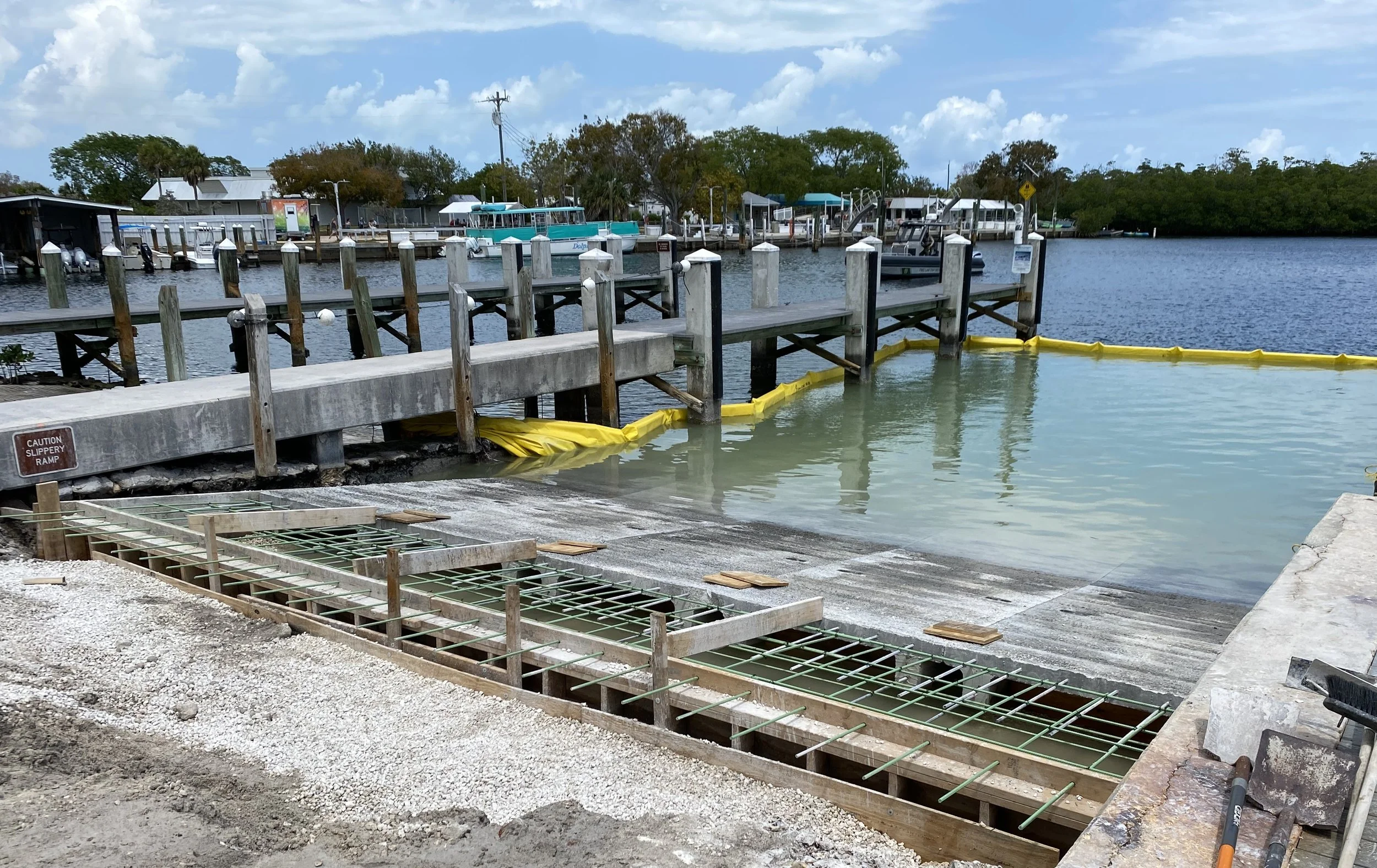 Shoreline Foundation, Inc. (SFI) successfully replaced the existing boat ramp with a combination of precast and cast-in-place construction. The wet section of the ramp features four high-strength precast "Tedder Boat Ramp" panels, installed on a prepared gravel base. Once in position, the panels were secured with a cast-in-place key to ensure structural integrity. The project continued with the construction of a 65' x 22' cast-in-place dry ramp section. This efficient method allowed for rapid installation, with the majority of the work completed within just four weeks. Notably, all construction was carried out while maintaining public access to the adjacent boat ramp, ensuring uninterrupted use for park visitors.